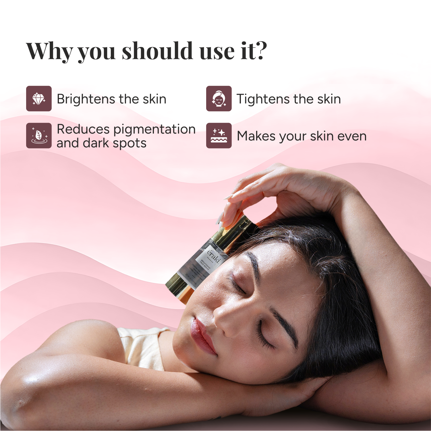 A lightweight gel-based formula suitable for all skin types, designed to even skin tone, reduce tanning, and enhance natural glow.