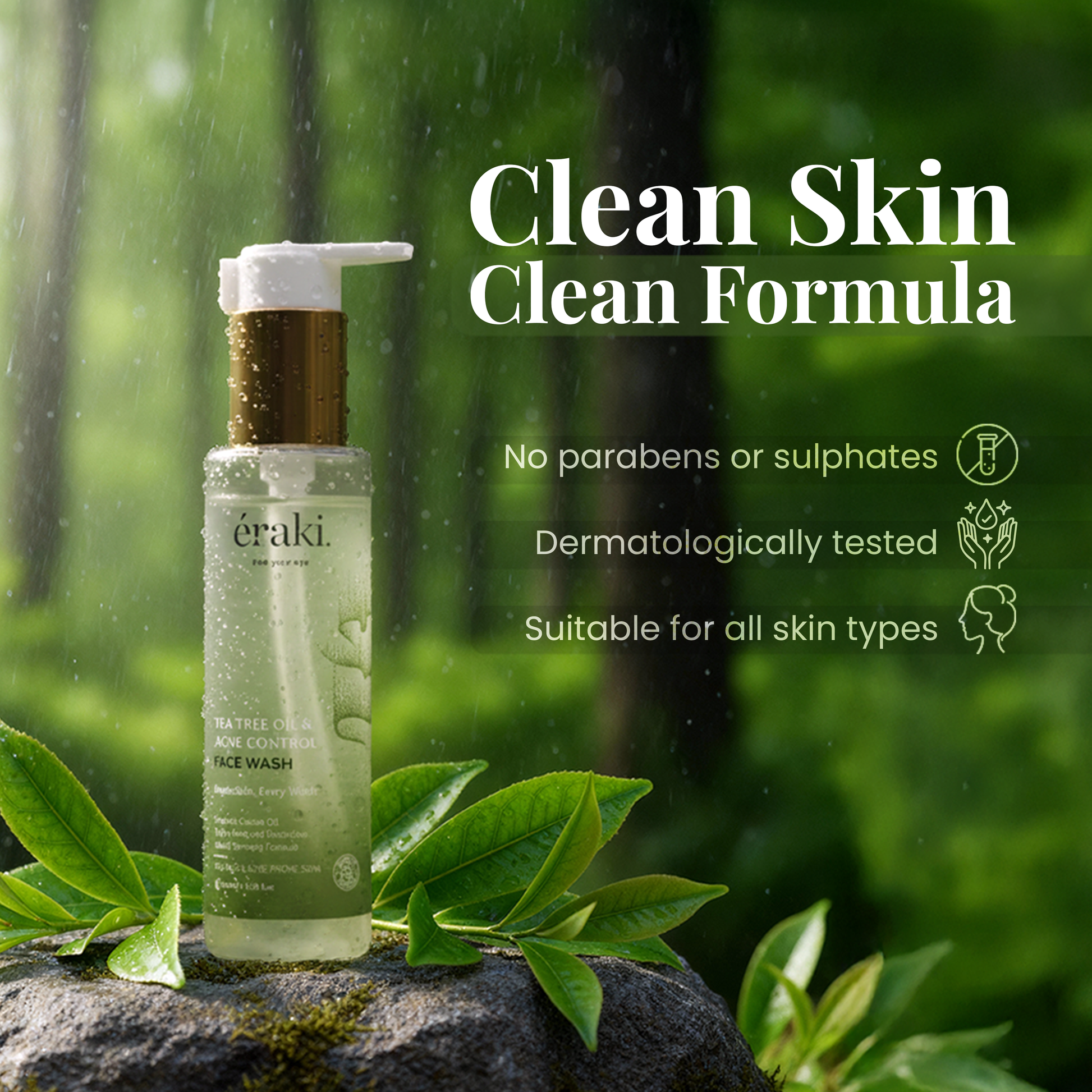 Switch to éraki Tea Tree Face Wash for clean, clarified, and acne-free skin—every wash.